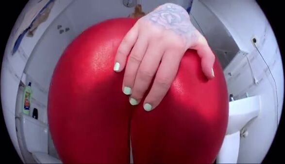 Betty in shitting in Red leather pants