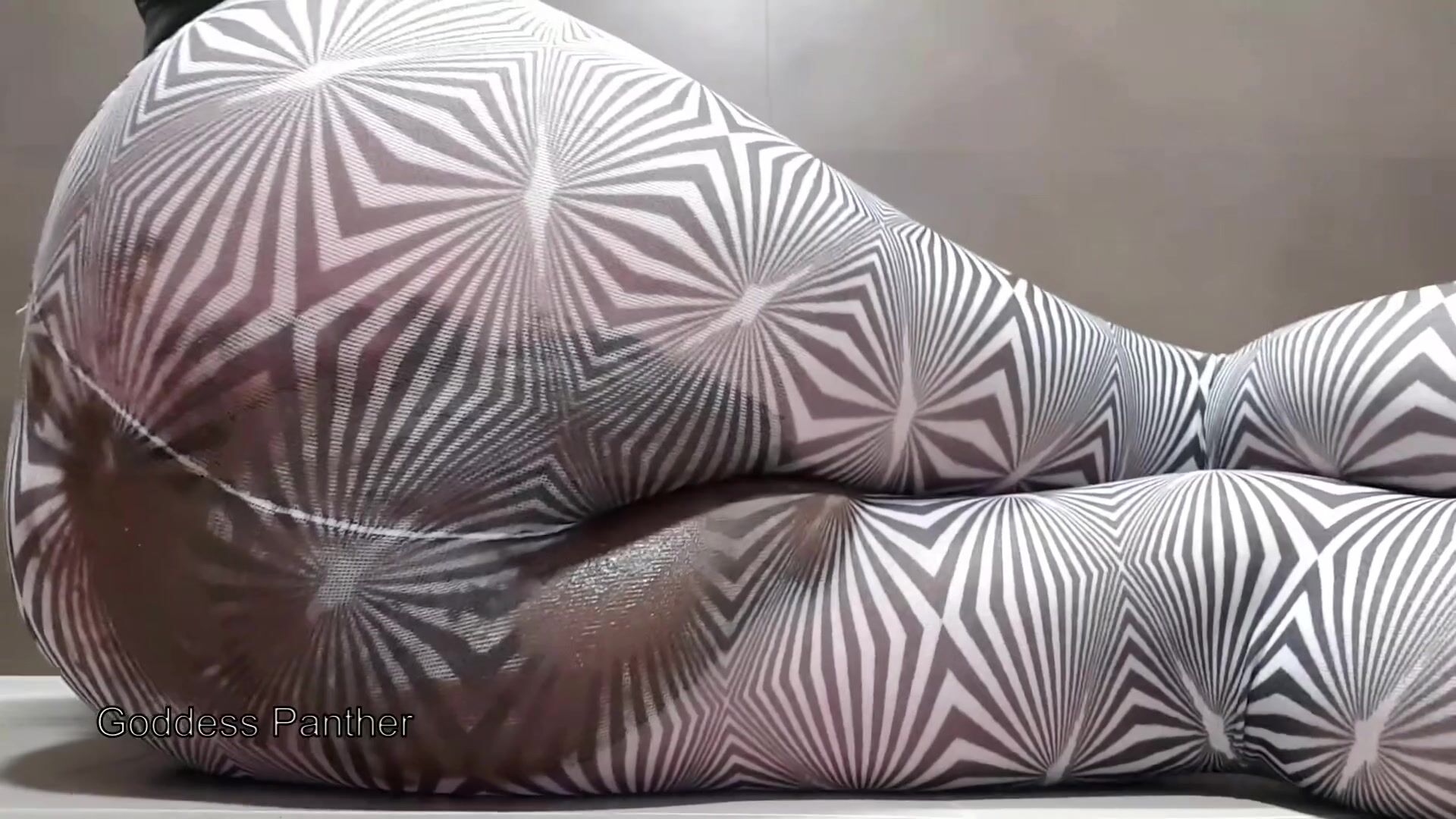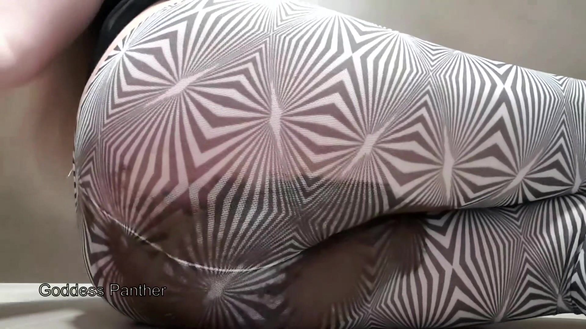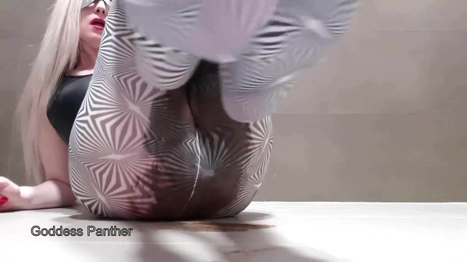 Big poop in black and white pantyhose