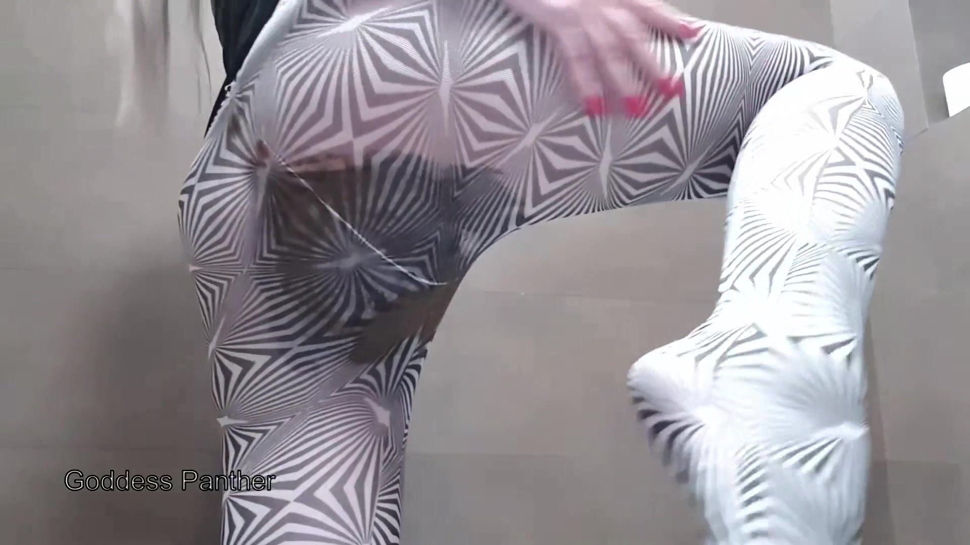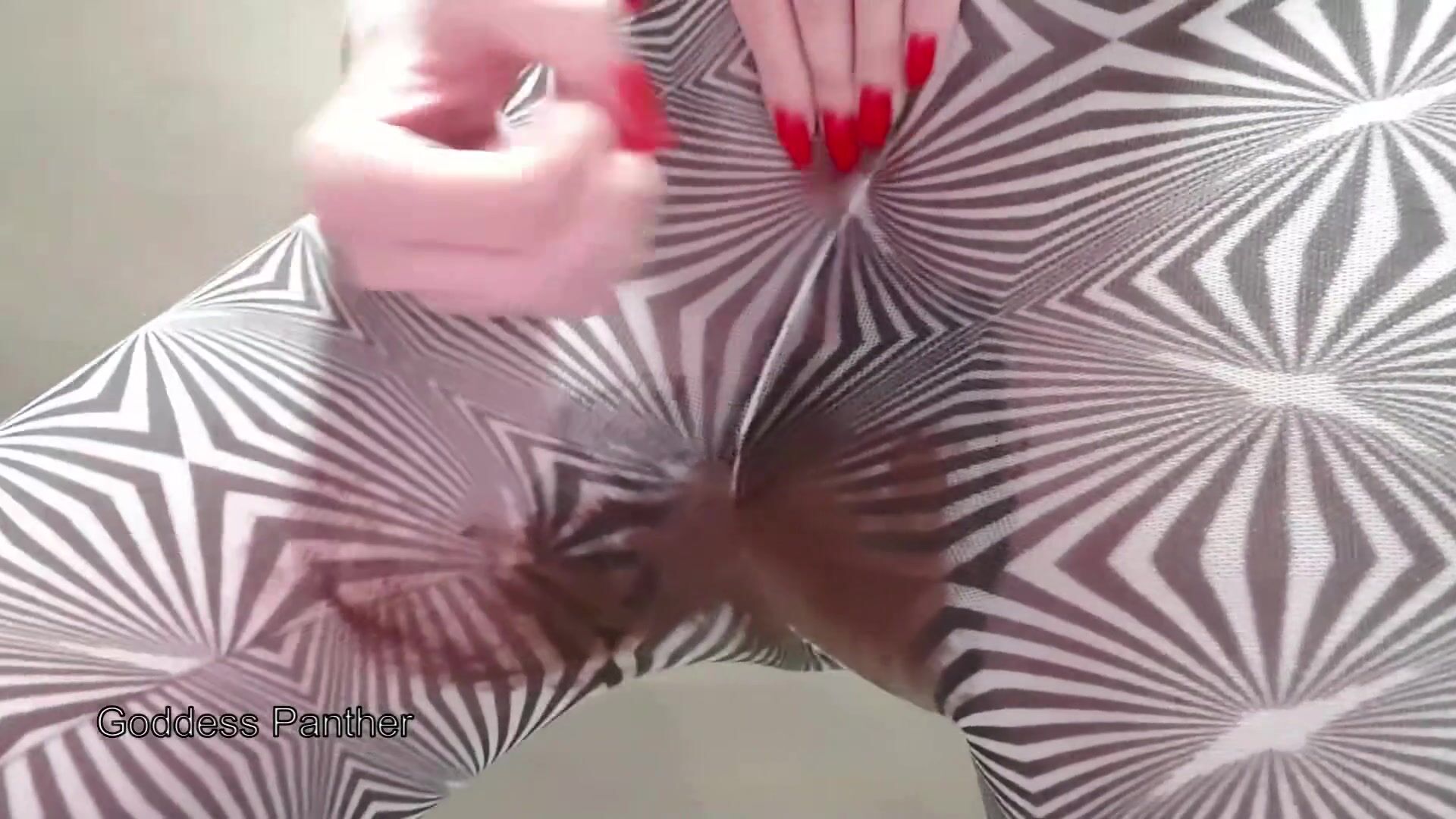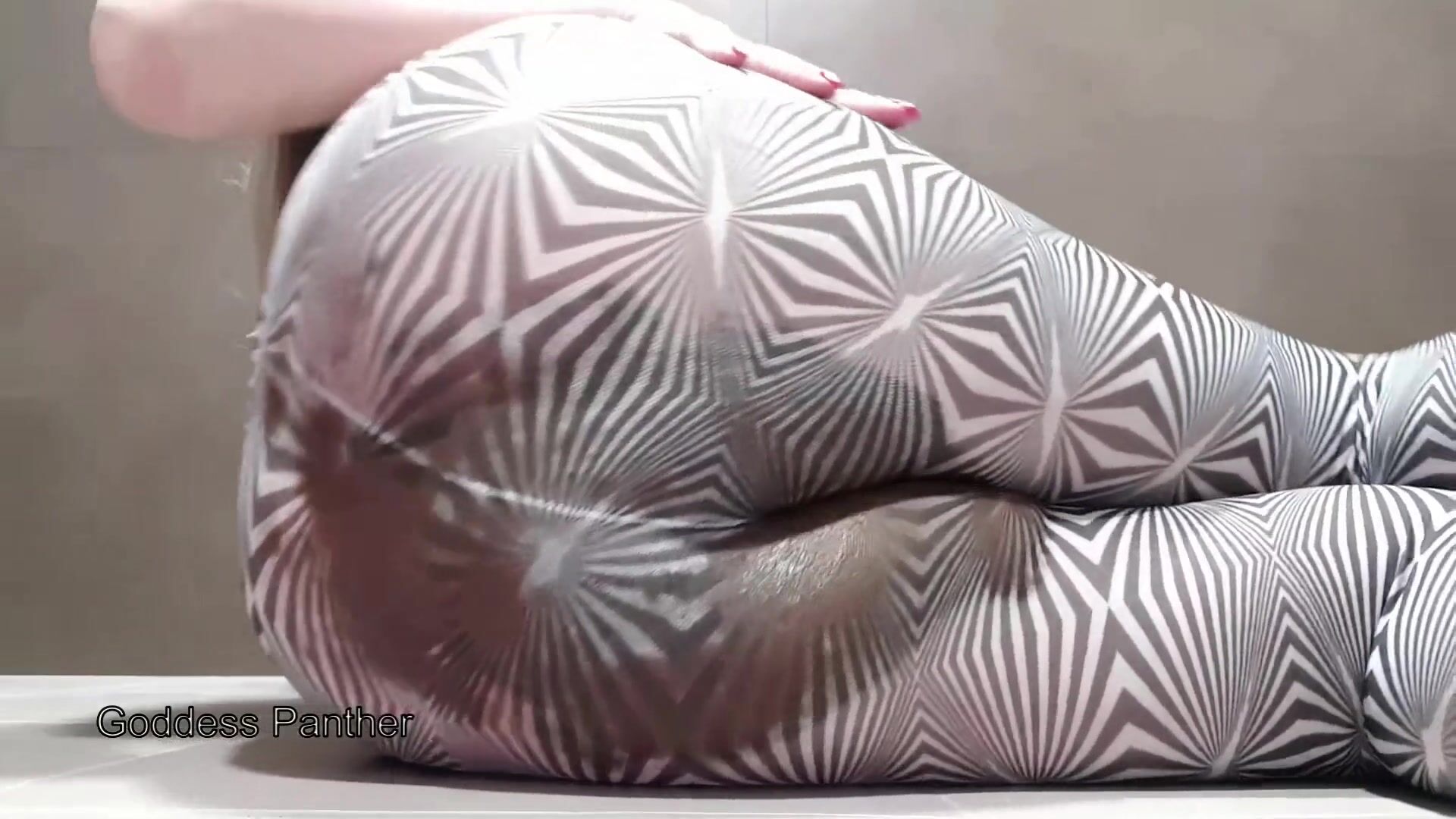 Big poop in black and white pantyhose