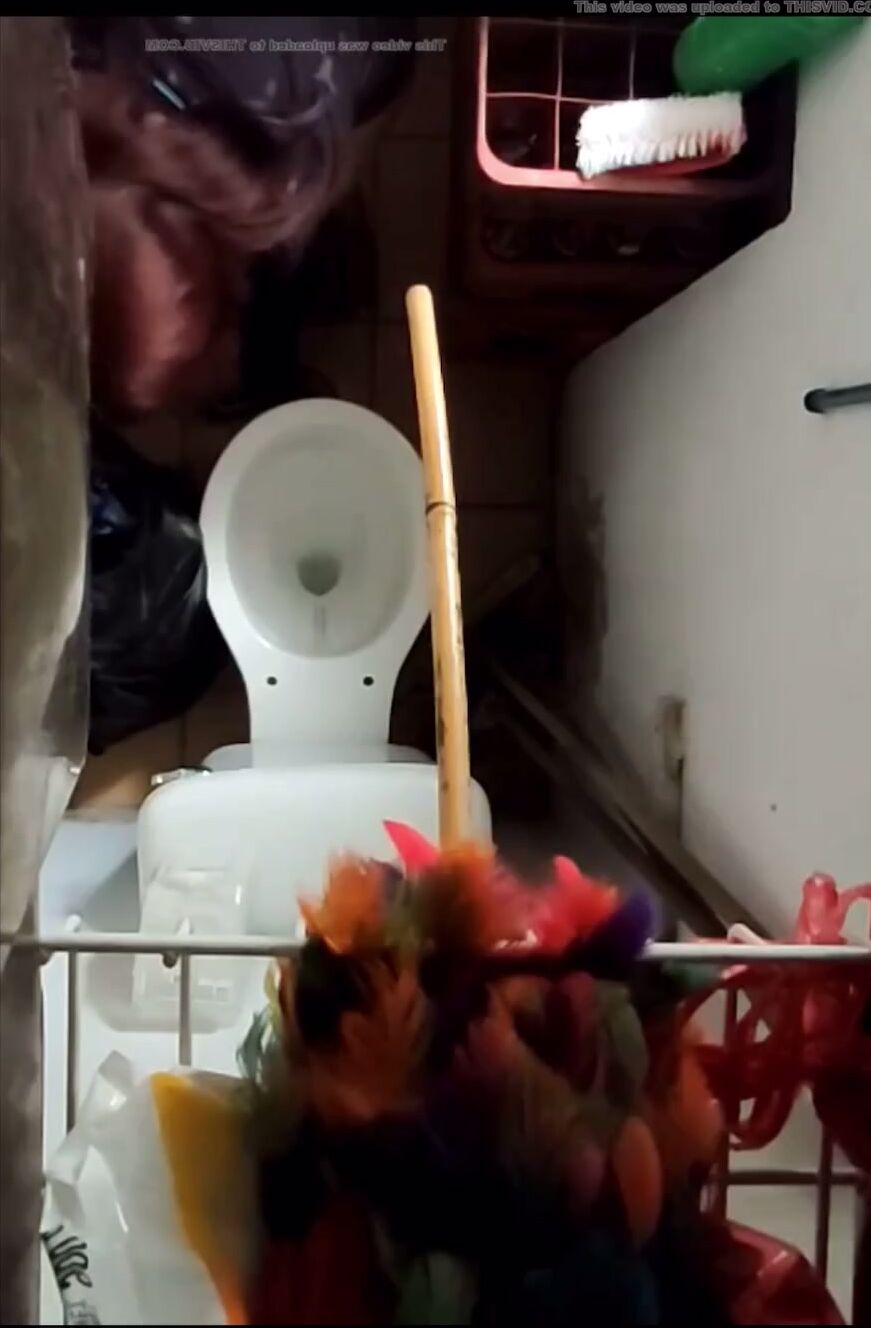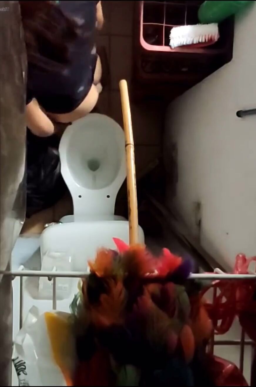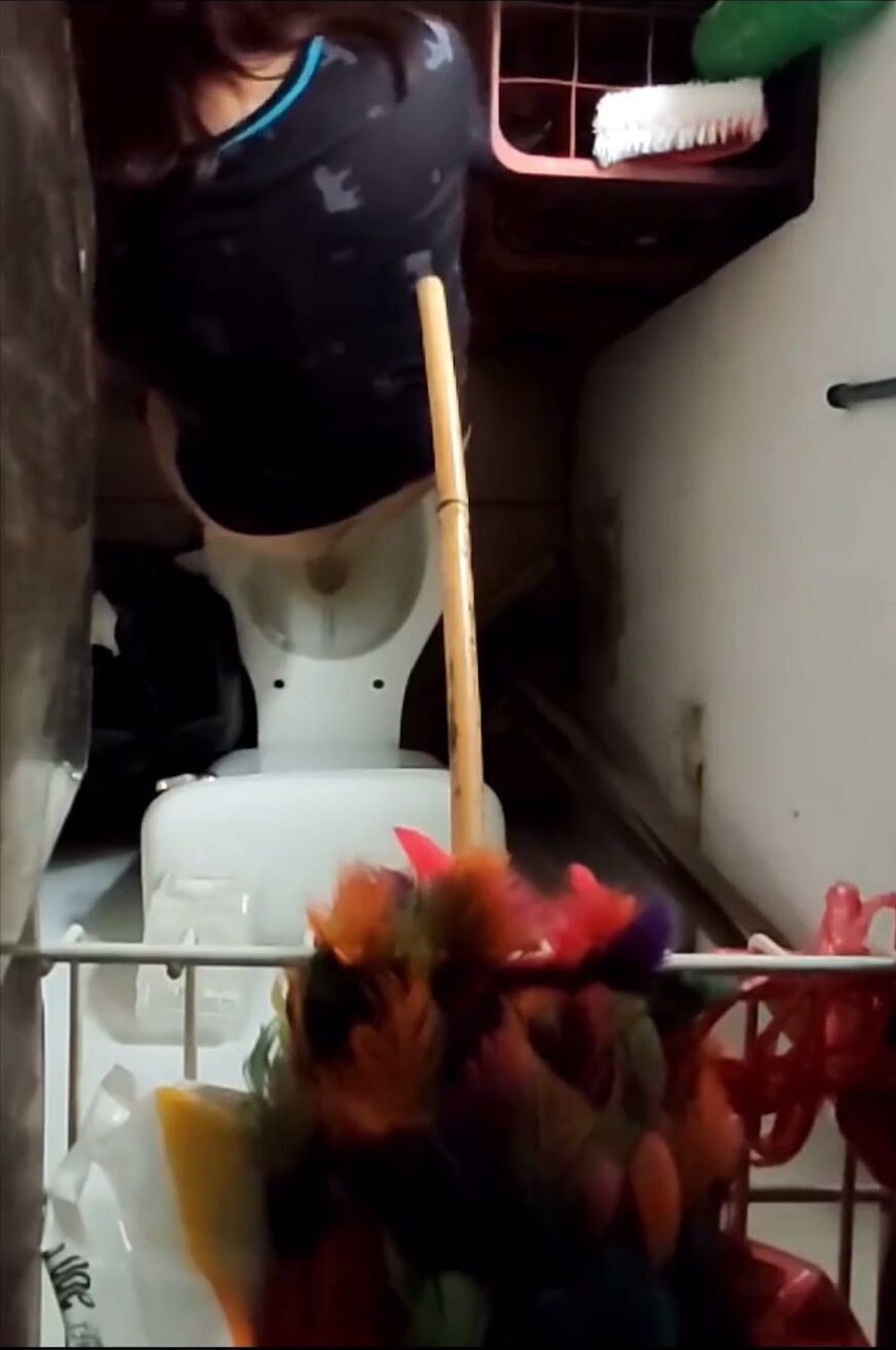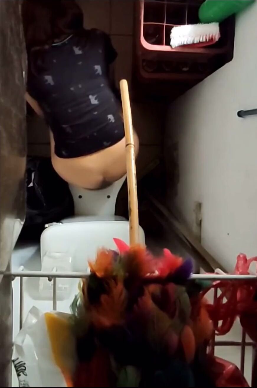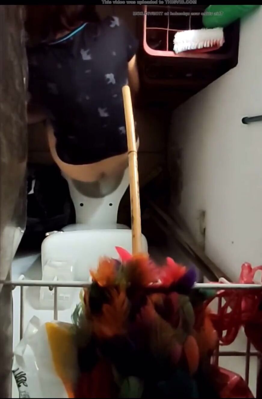 Girl open wide legs and shitting on the toilet floor