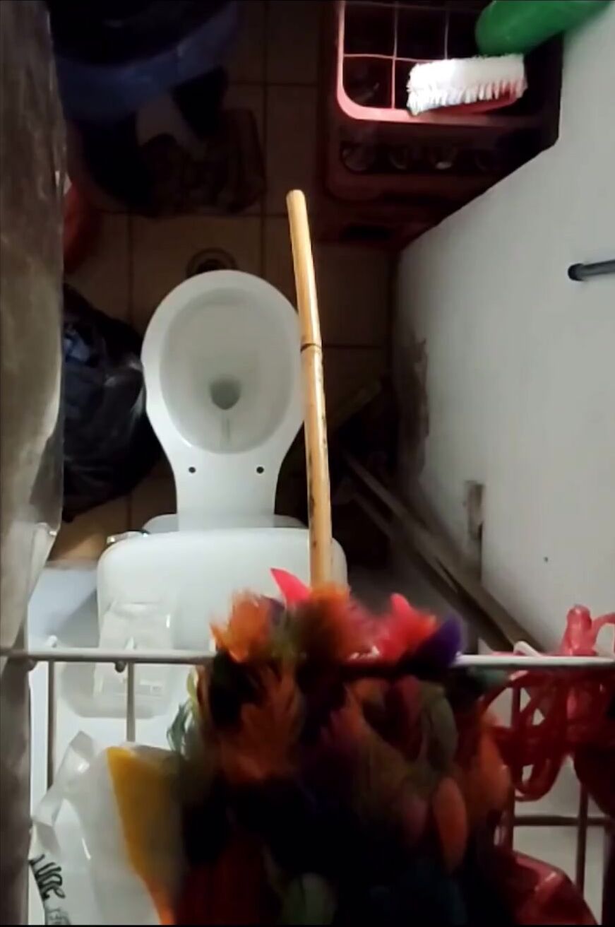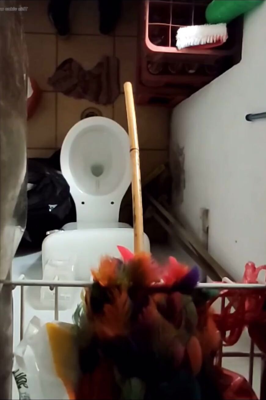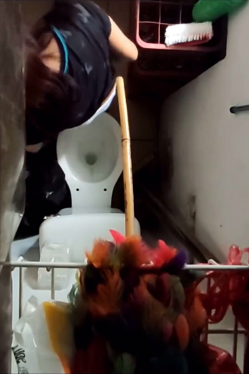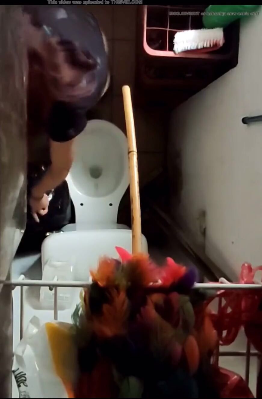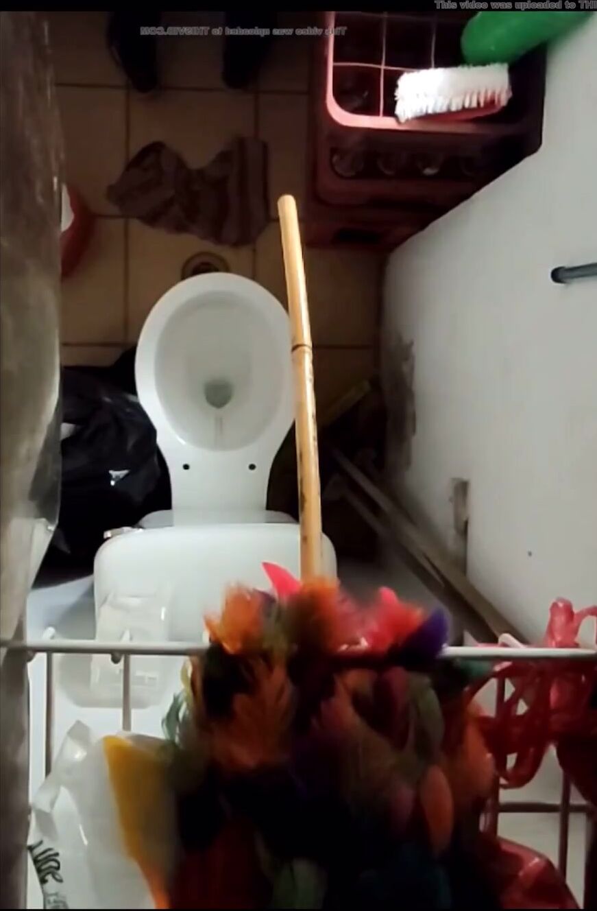 Girl open wide legs and shitting on the toilet floor