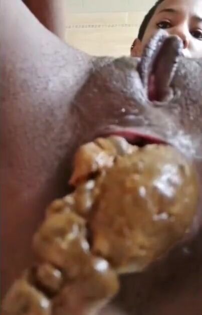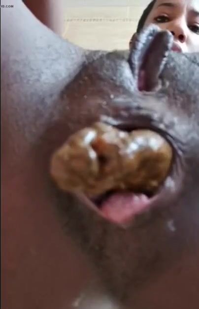 girl ass kissing , farting and big turd shit