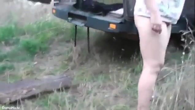 Полненькая жена получает клизму в фургоне на природе