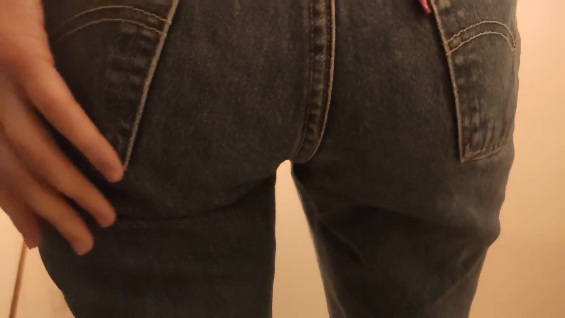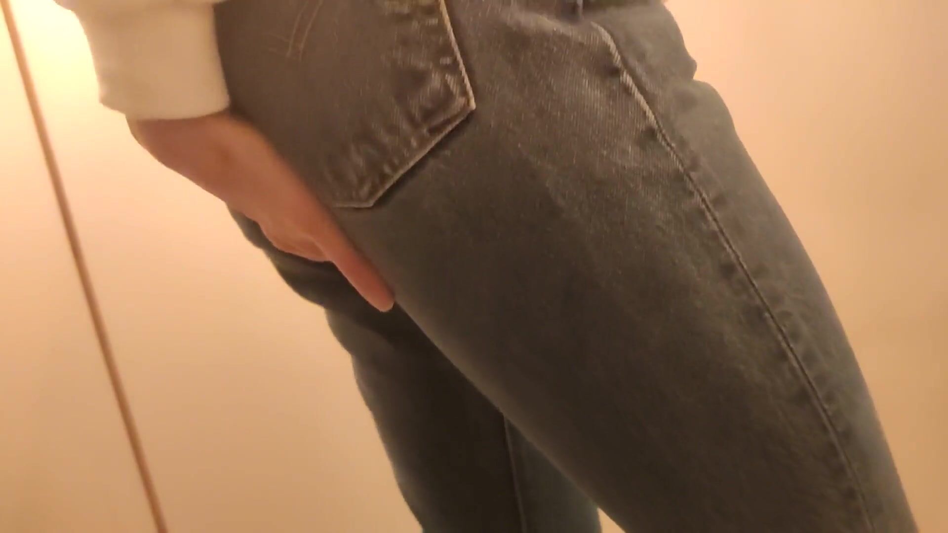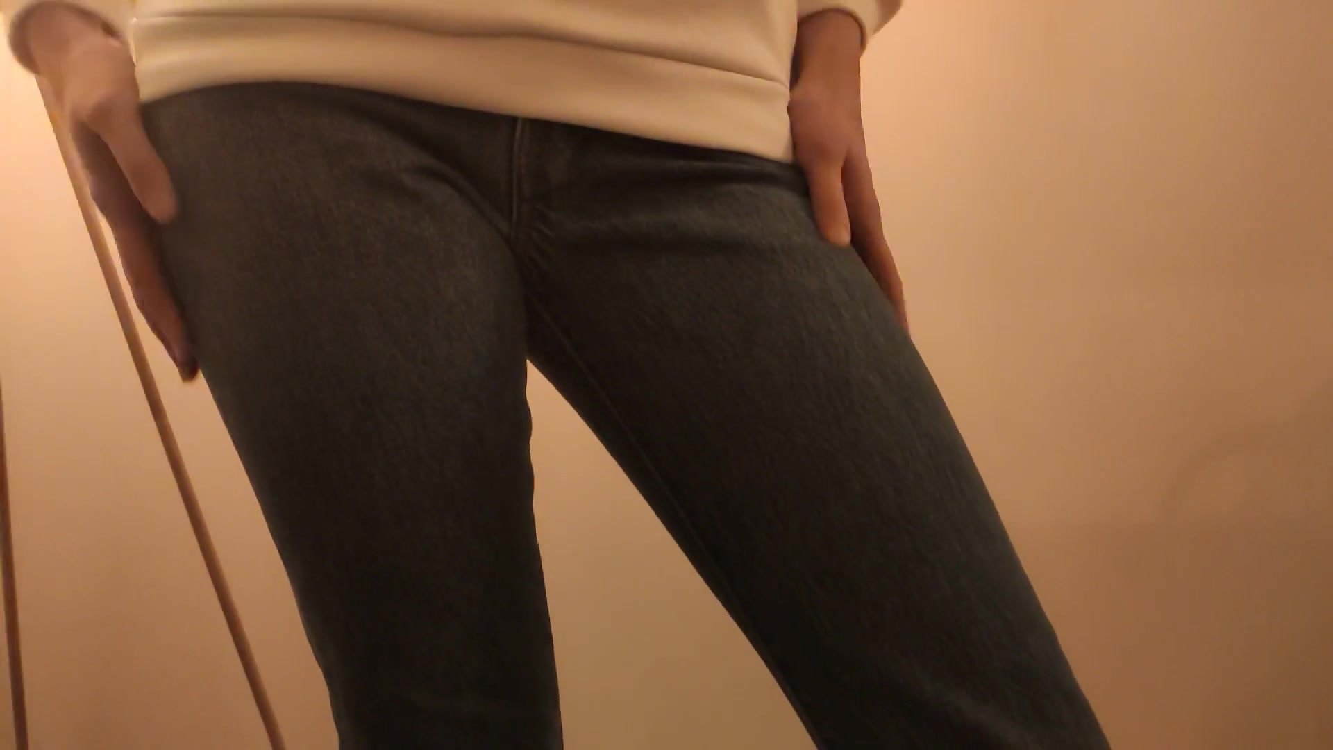 Girl messes her jeans and rubs