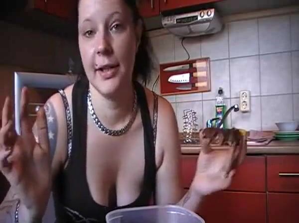 German lady eats chocowaffel.. mit Scheiße!