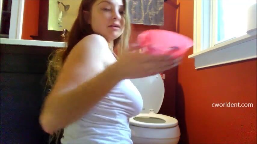 Super cute whore shits on toilet