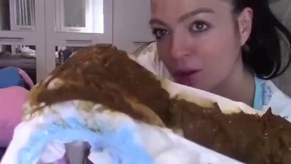 Shitty panties on head, anal spoon scat feed