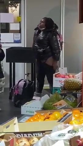 Lady caught shoplifting takes a shit
