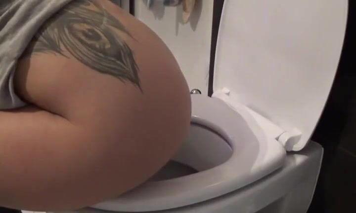Hot Tattooed babe pooping on toilet