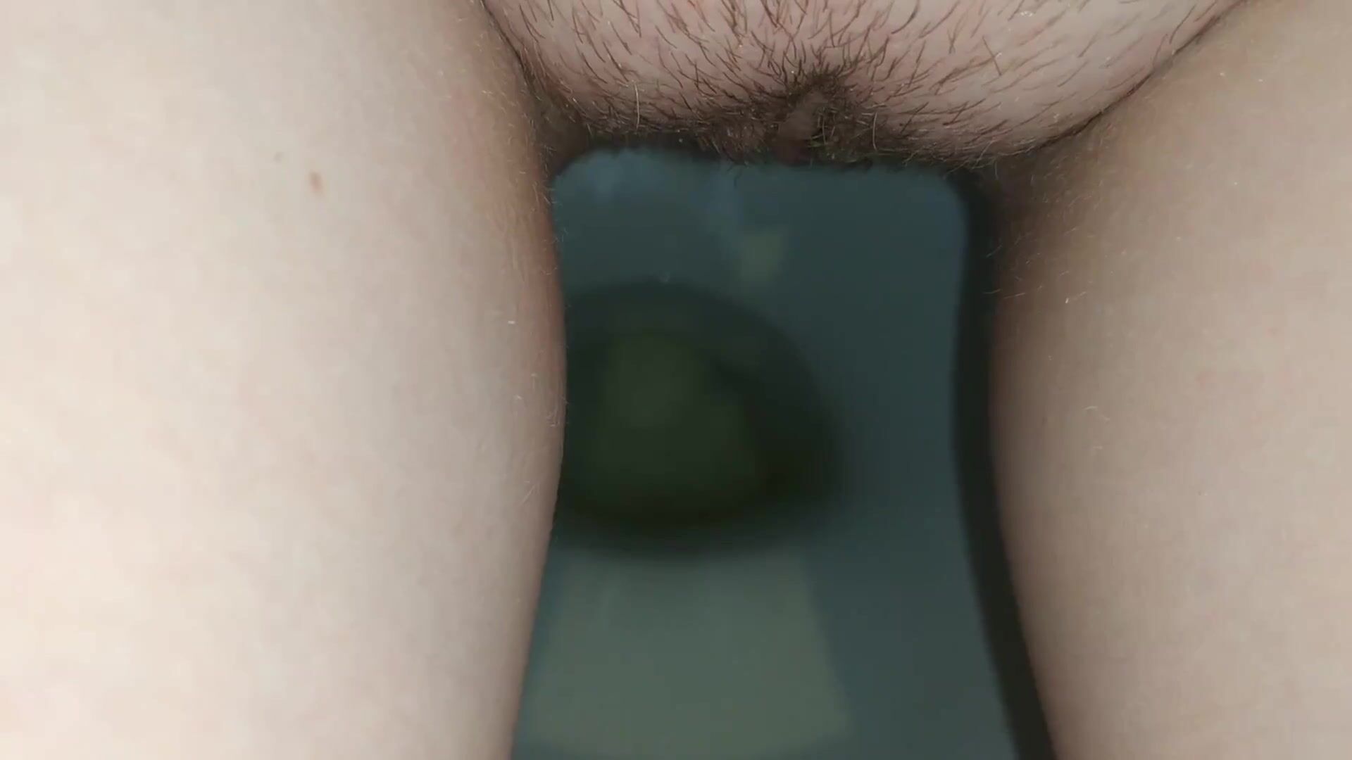 Showing hairy pussy while shitting