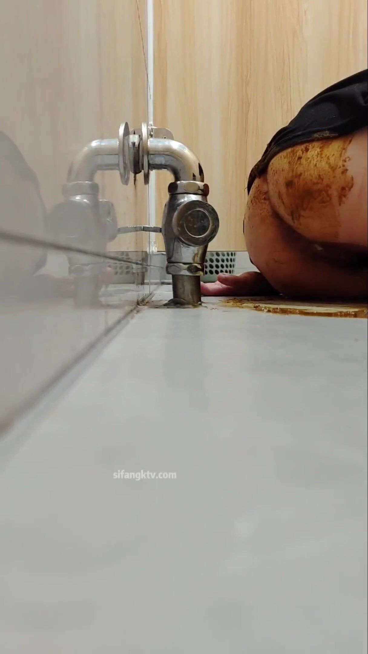 Drunk chinese girl sits on her poop