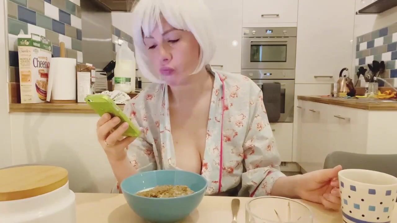 Lucky slave eating his mistress shit as breakfast