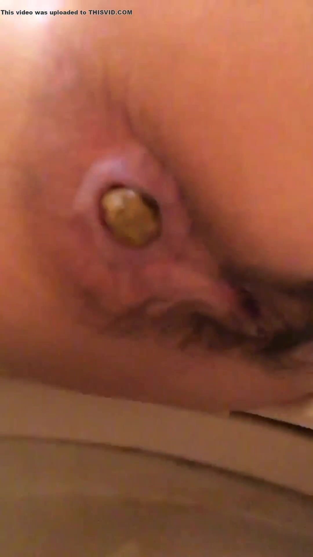 Chinese girl close up anal winking and pooping in the t
