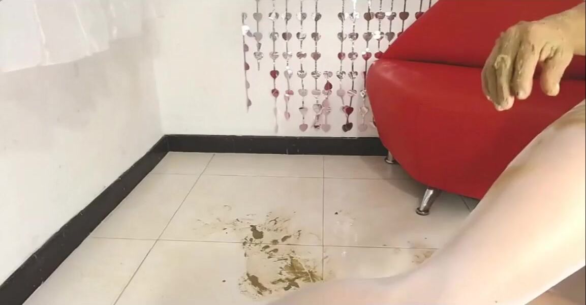 White pantyhose poop finish brown