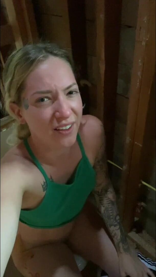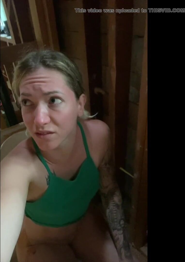 Girl pooping at building site