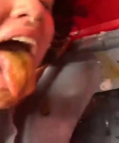 Licking old shit from Port poty