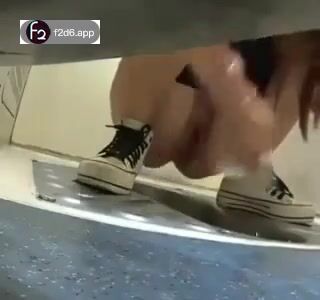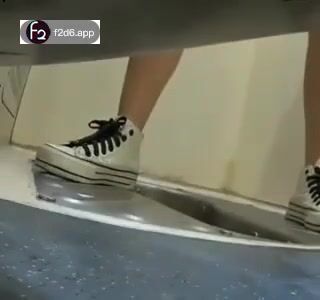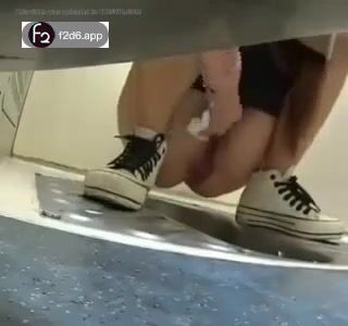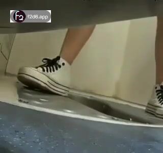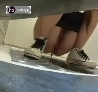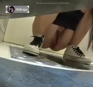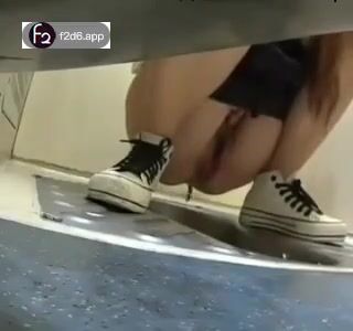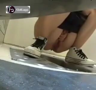 Girl open wide legs and shitting on the toilet floor