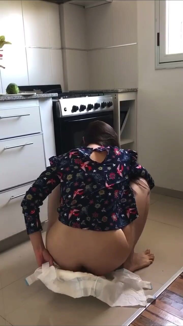 Girl poops diaper while cooking and shows you