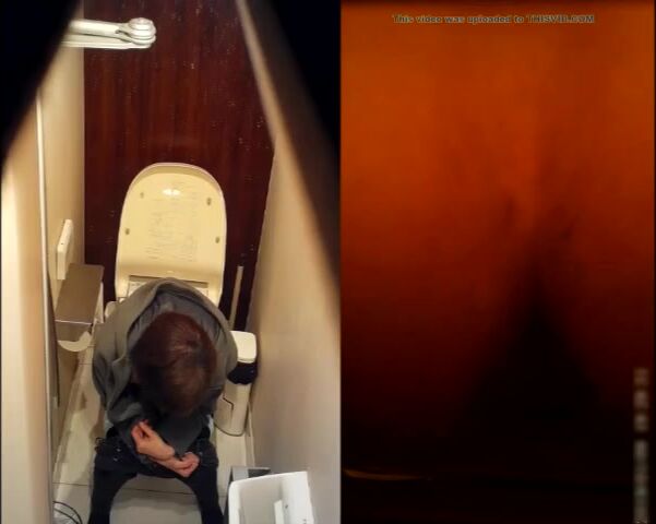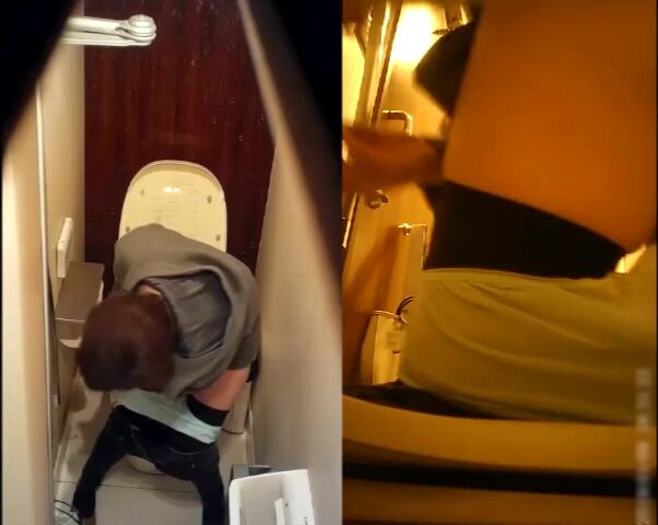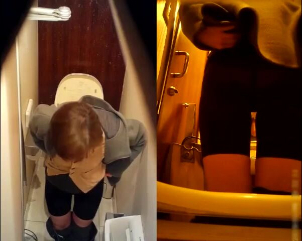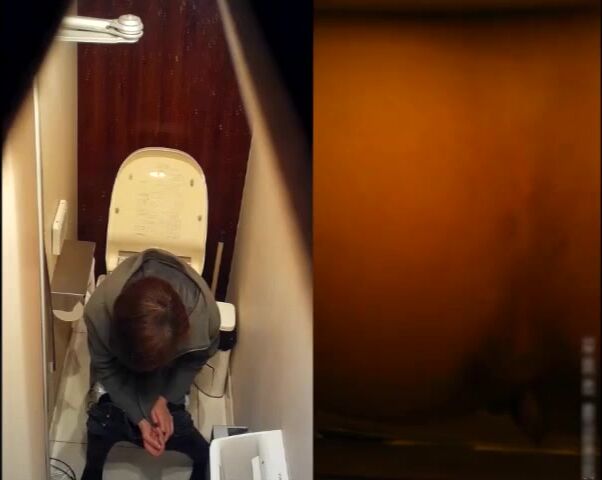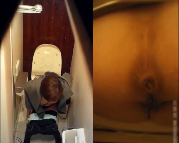 beautiful brunette shitting on toilet