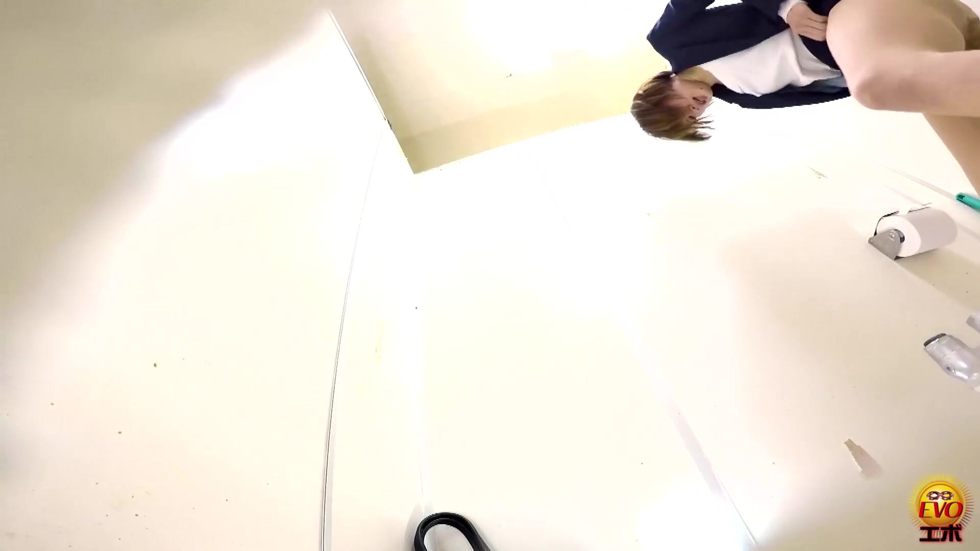 Girl open wide legs and shitting on the toilet floor