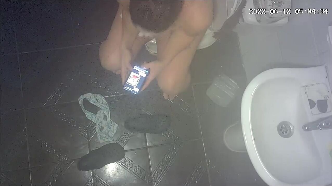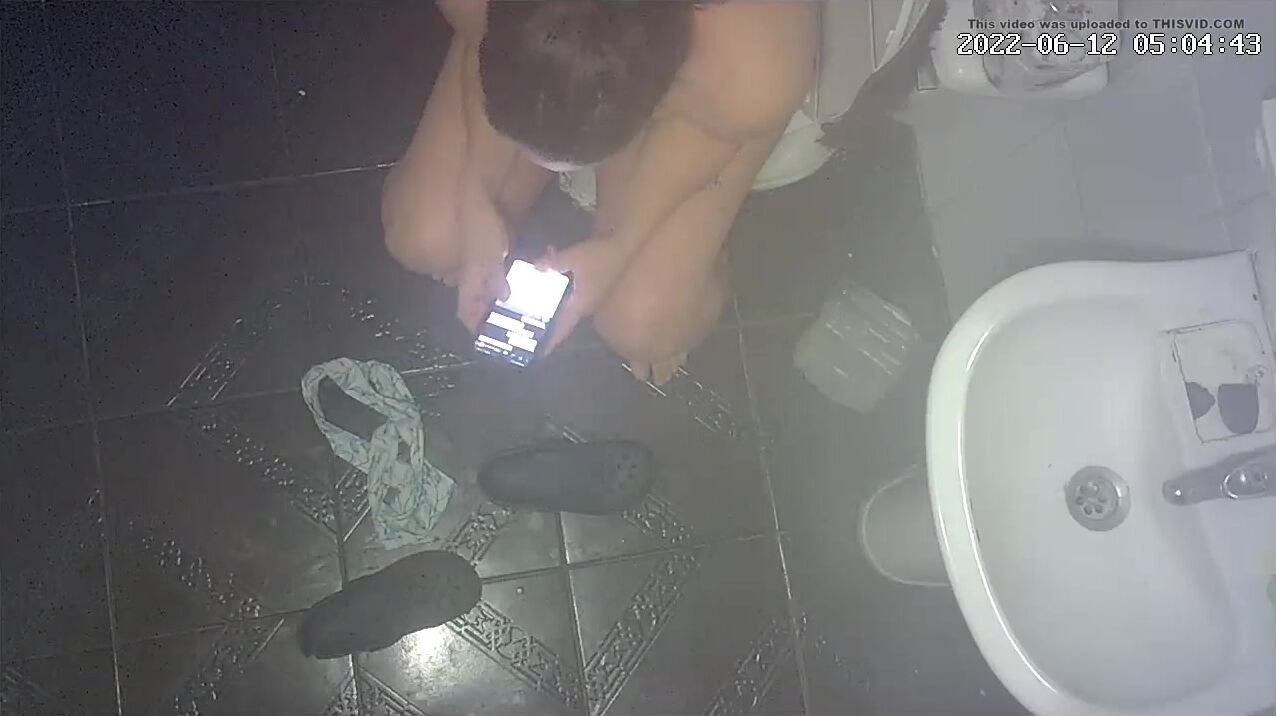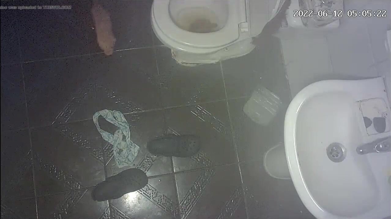 Girl open wide legs and shitting on the toilet floor