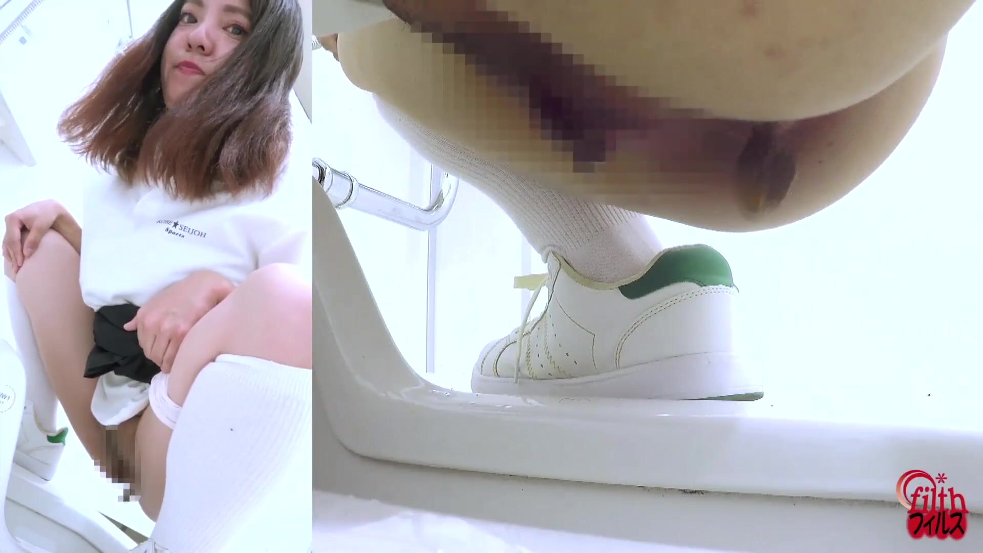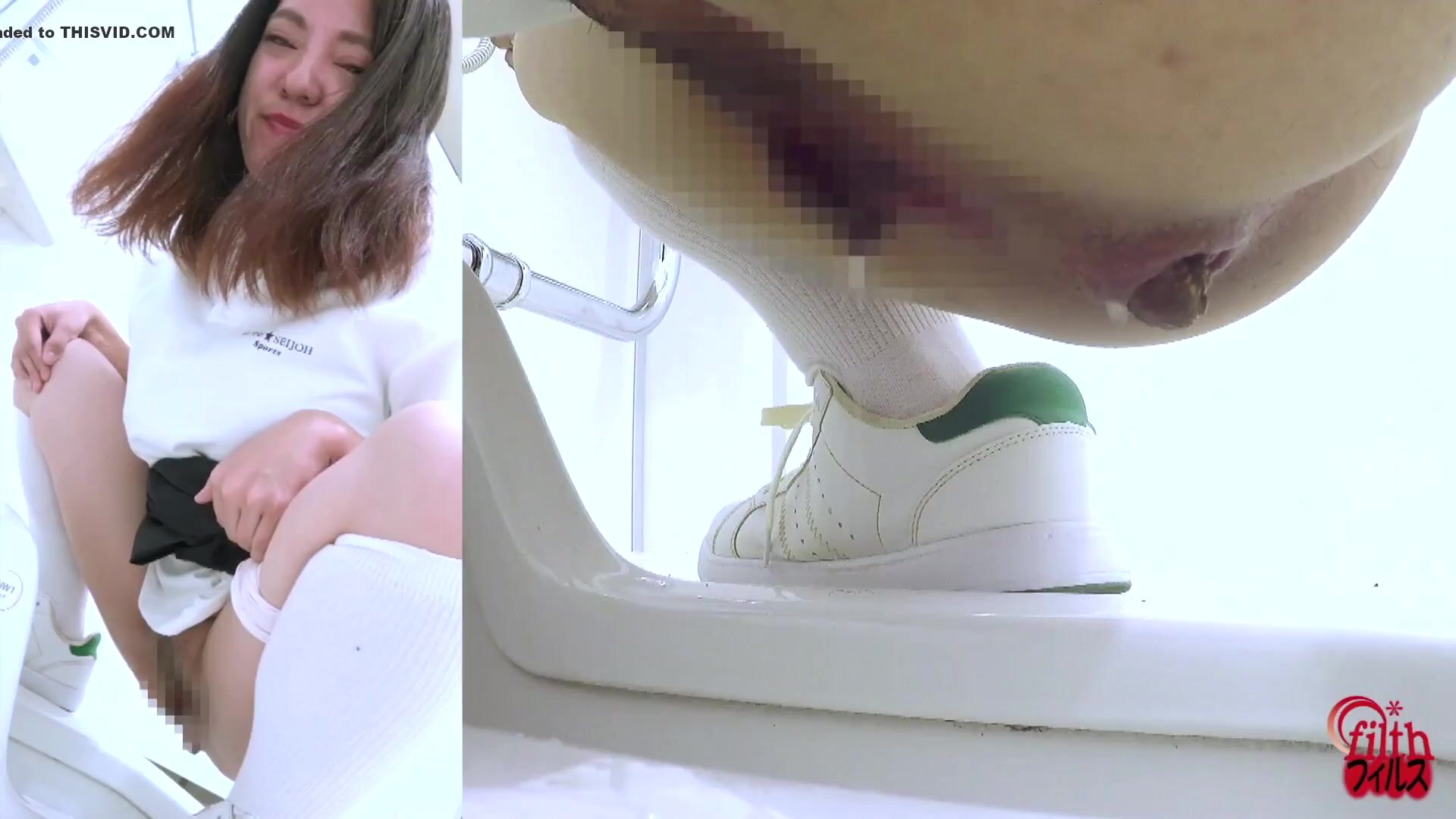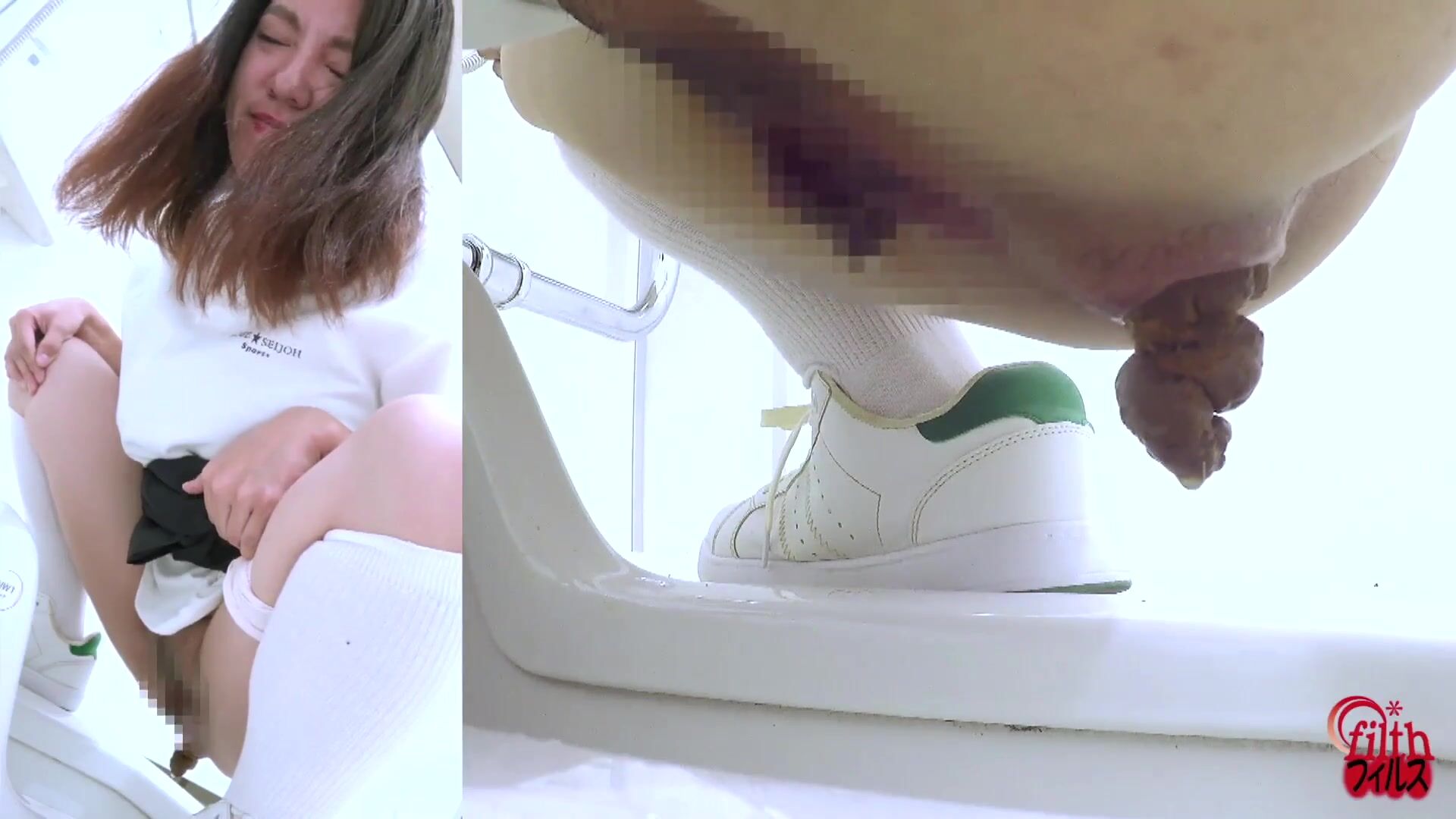 Japanese girl looks at you while pooping (Side POV)