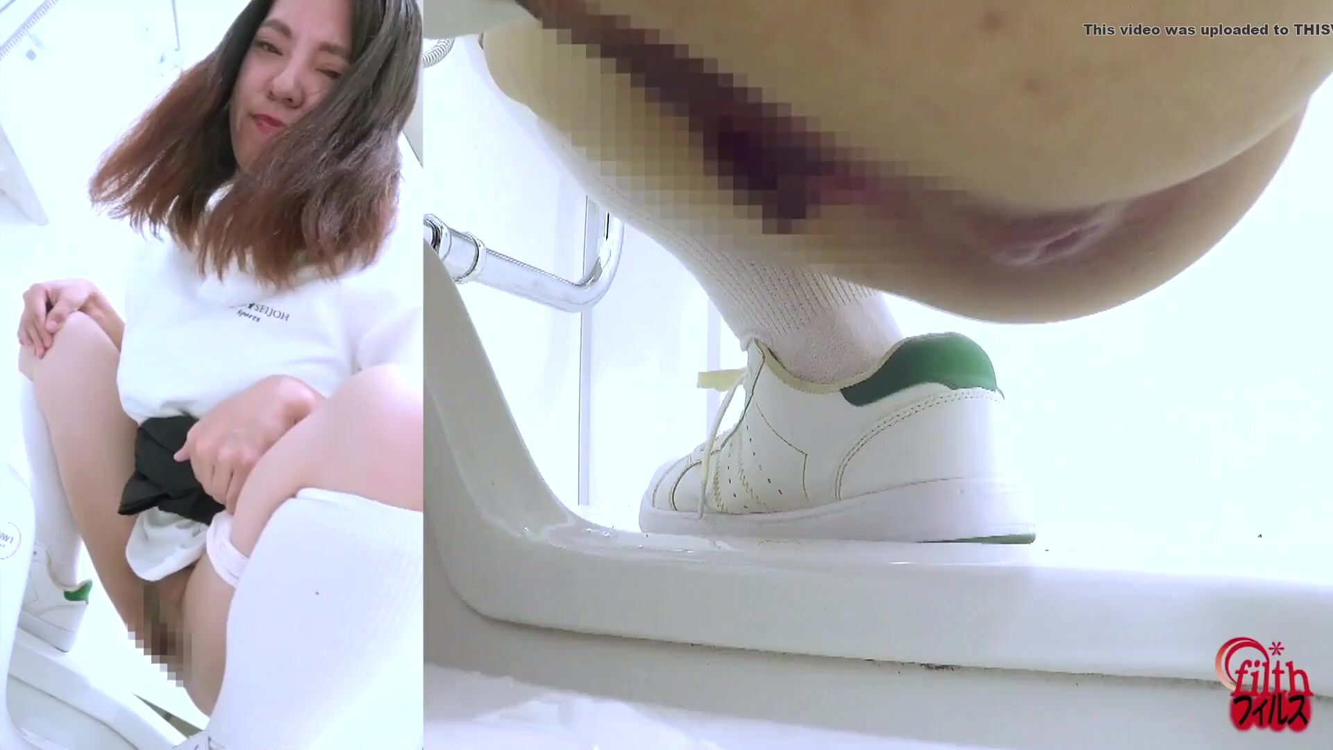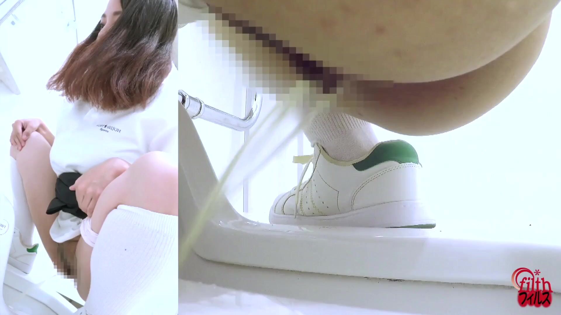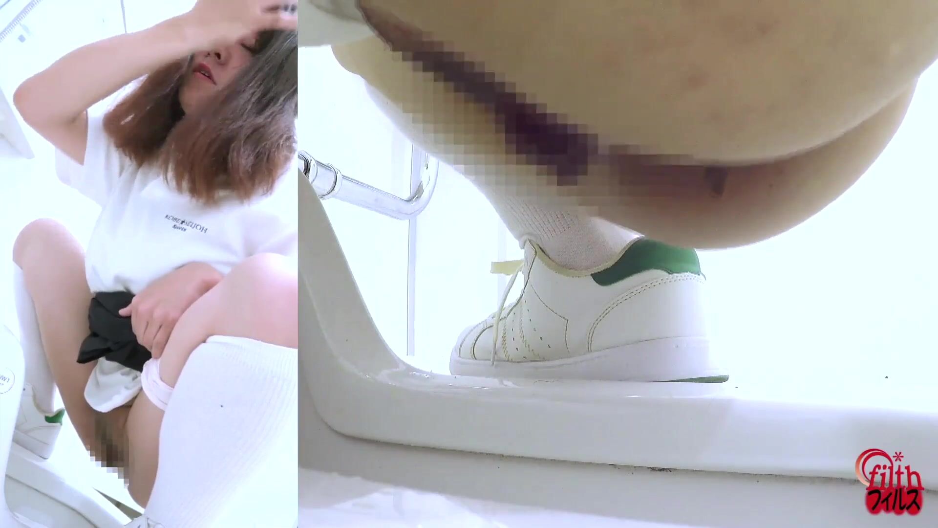 Japanese girl looks at you while pooping (Side POV)