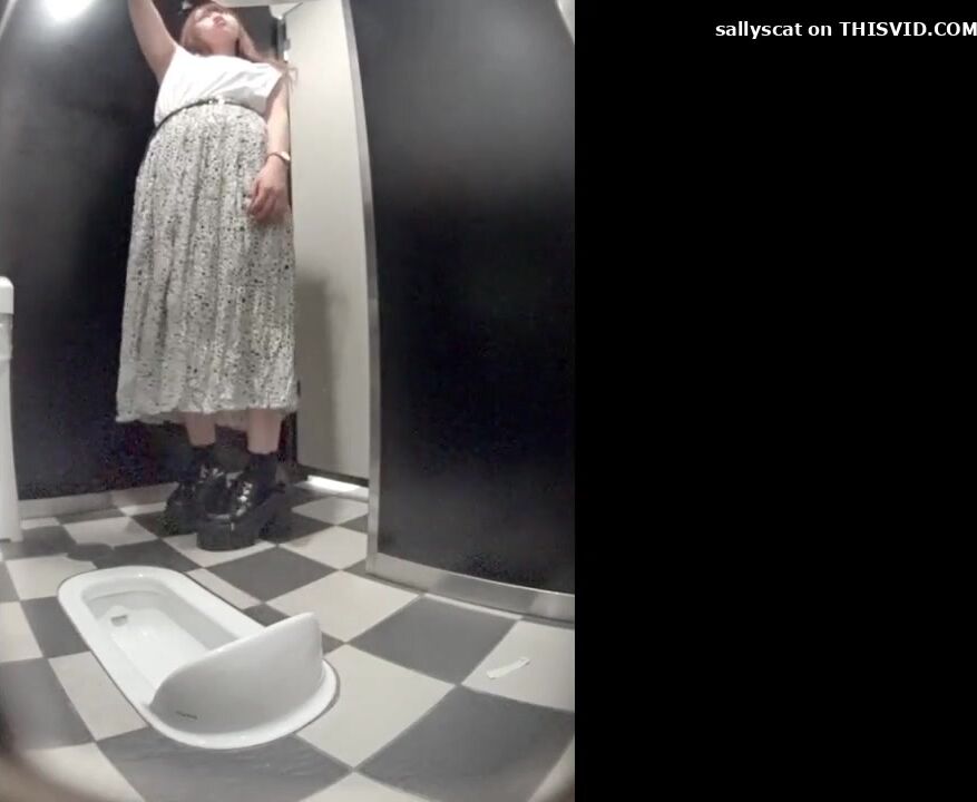 Cute japanese giril shitting in shopping mall toilet