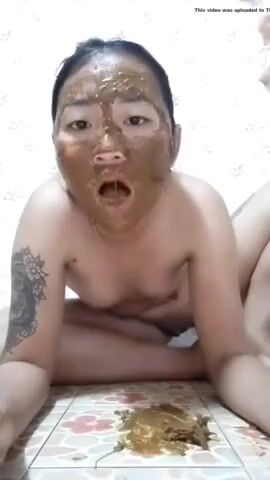 Asian girl tastes her shit