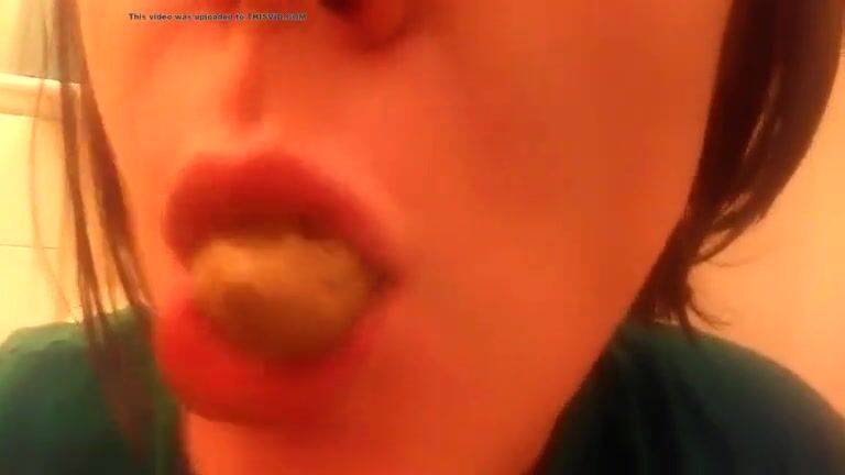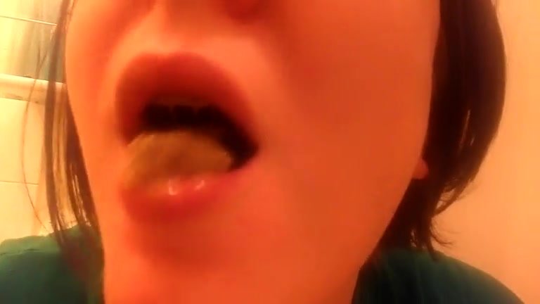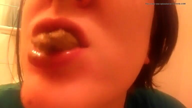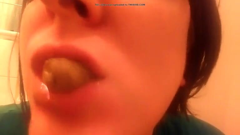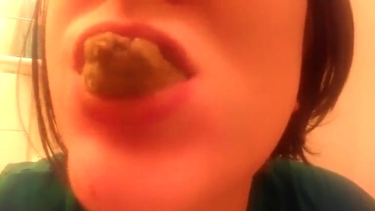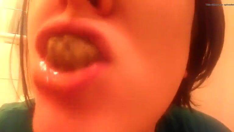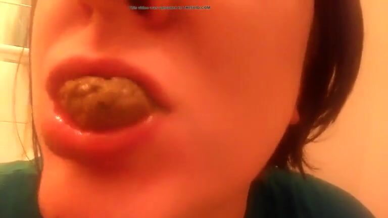 College teen eating poop in close up
