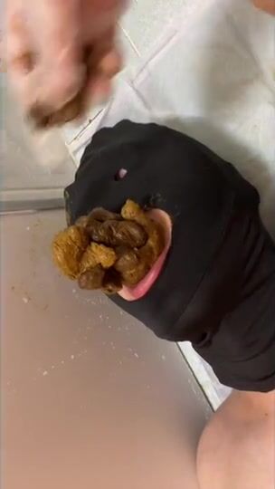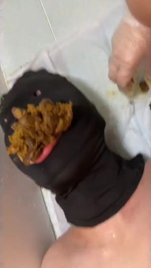 Girl tries to feed a large amount of poop to slave