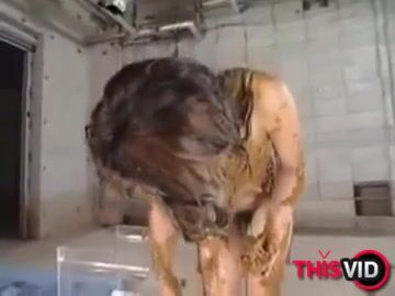 Top model girl play with shit hide dildo in ass