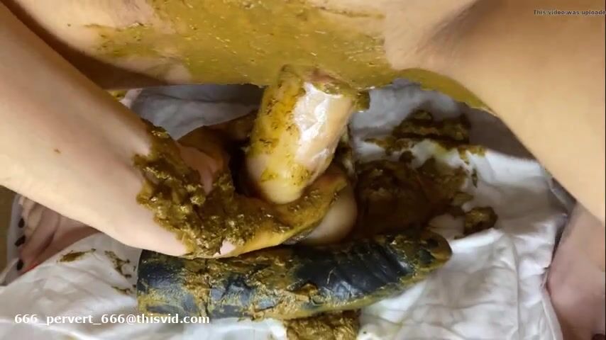 beautiful girl playing with her shit in her vagina