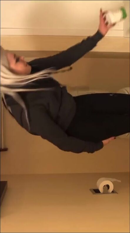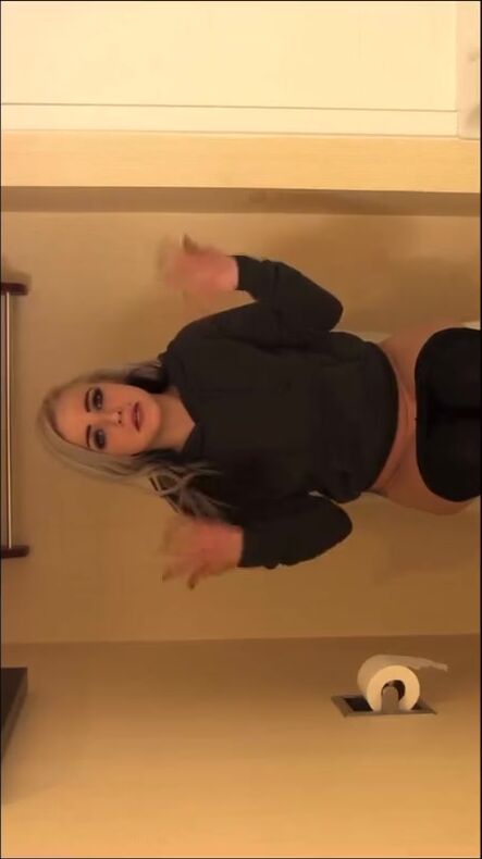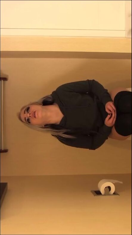 Hot blonde poops on toilet