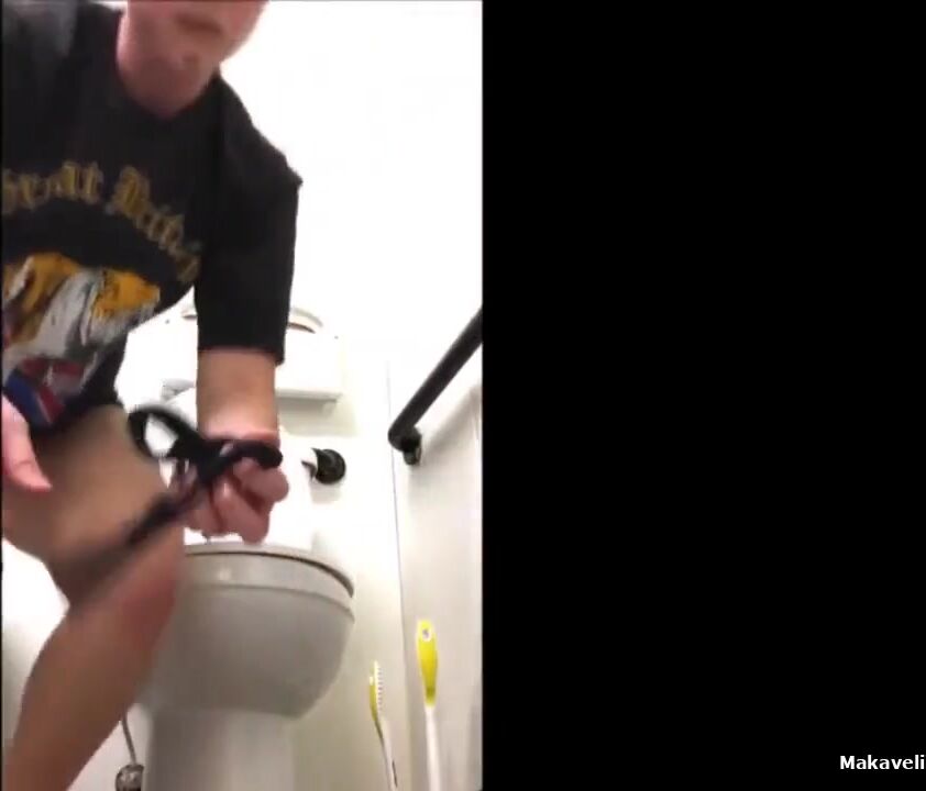 Shitting and tasting scat in public restroom