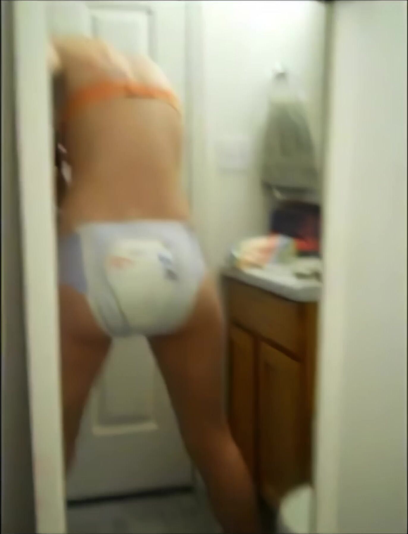 AI 4K Upscale Blond Teen Diaper Mess in Bathroom