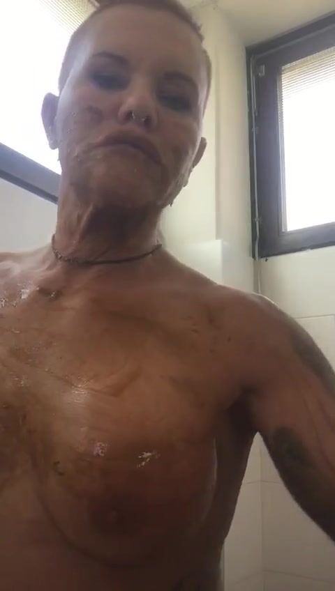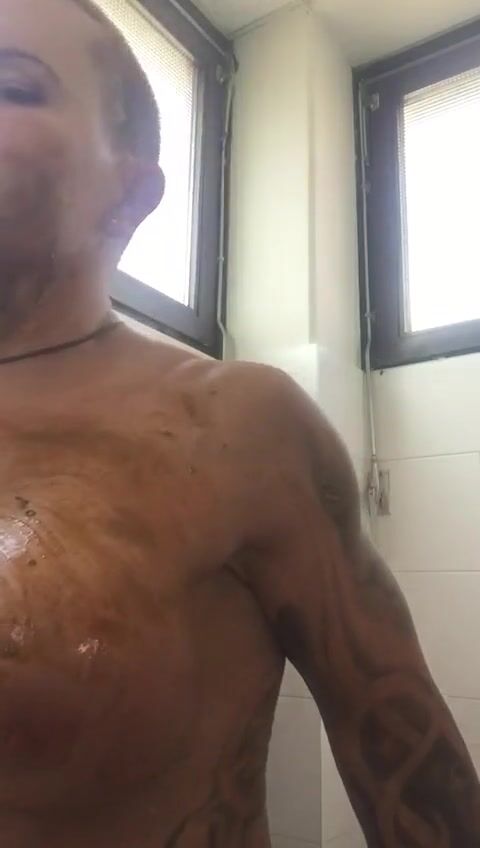 very dirty enema in bathtube