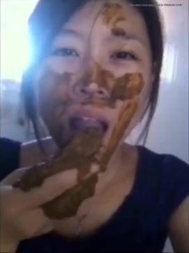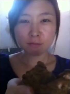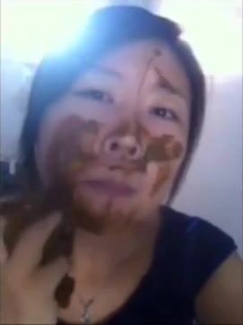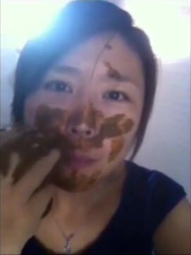 Chinese girl smears and eats her shit