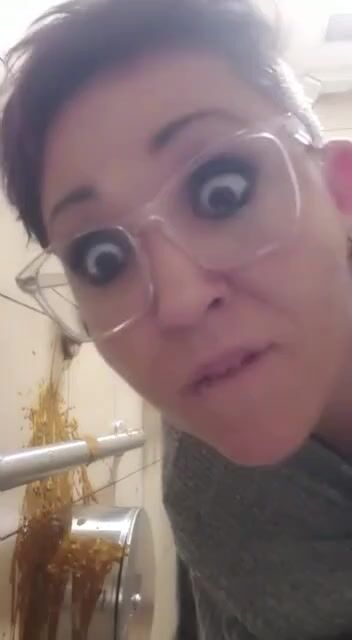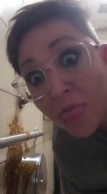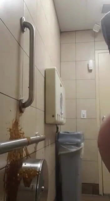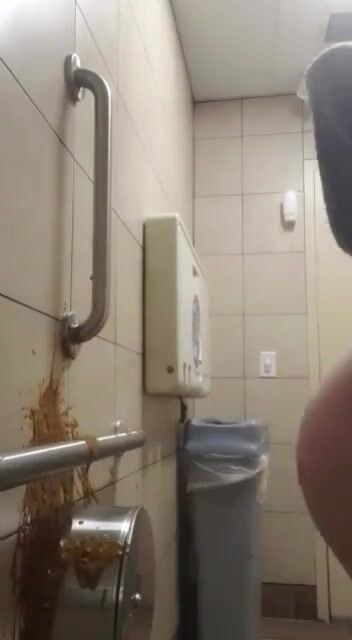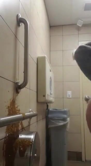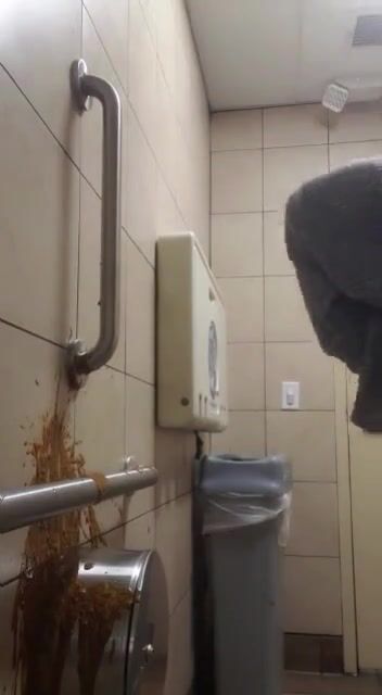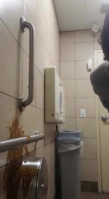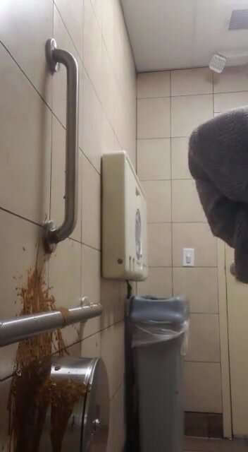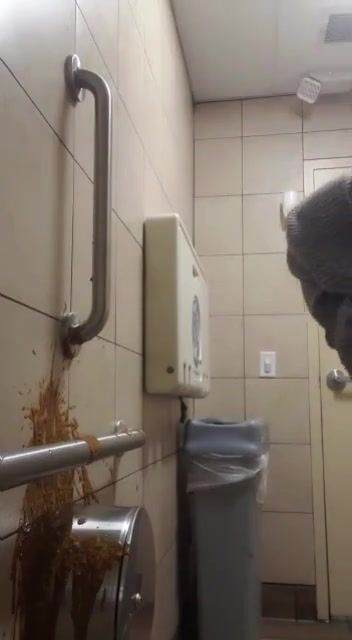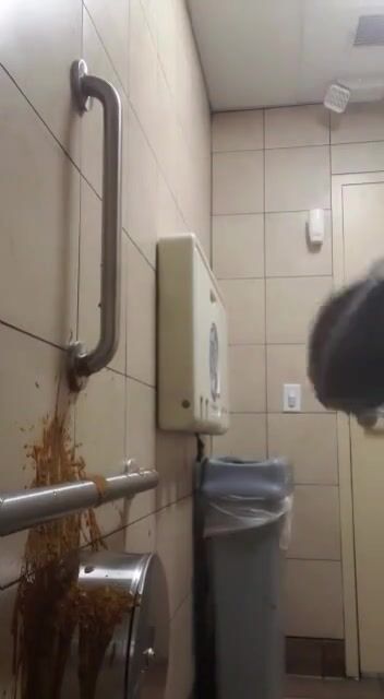 Woman has diarrhea on bathroom wall