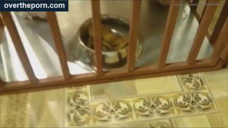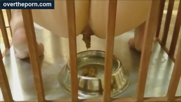 Milf goes into a cage and shit in a dog bowl