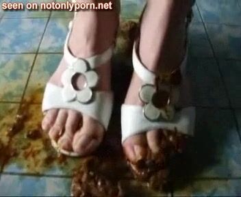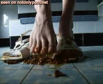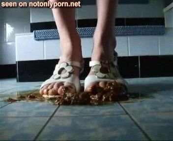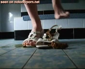 Girl shits on shoes and wears them