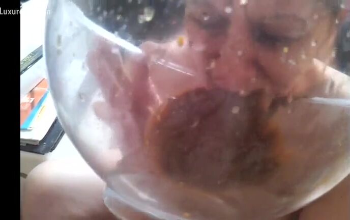 asian shitting in a jar