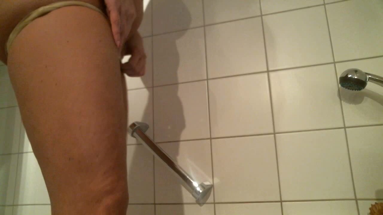 Messing latex pants in the bath