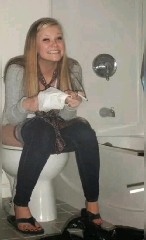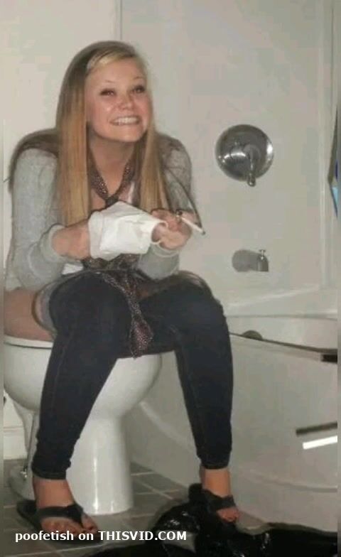 Girl open wide legs and shitting on the toilet floor