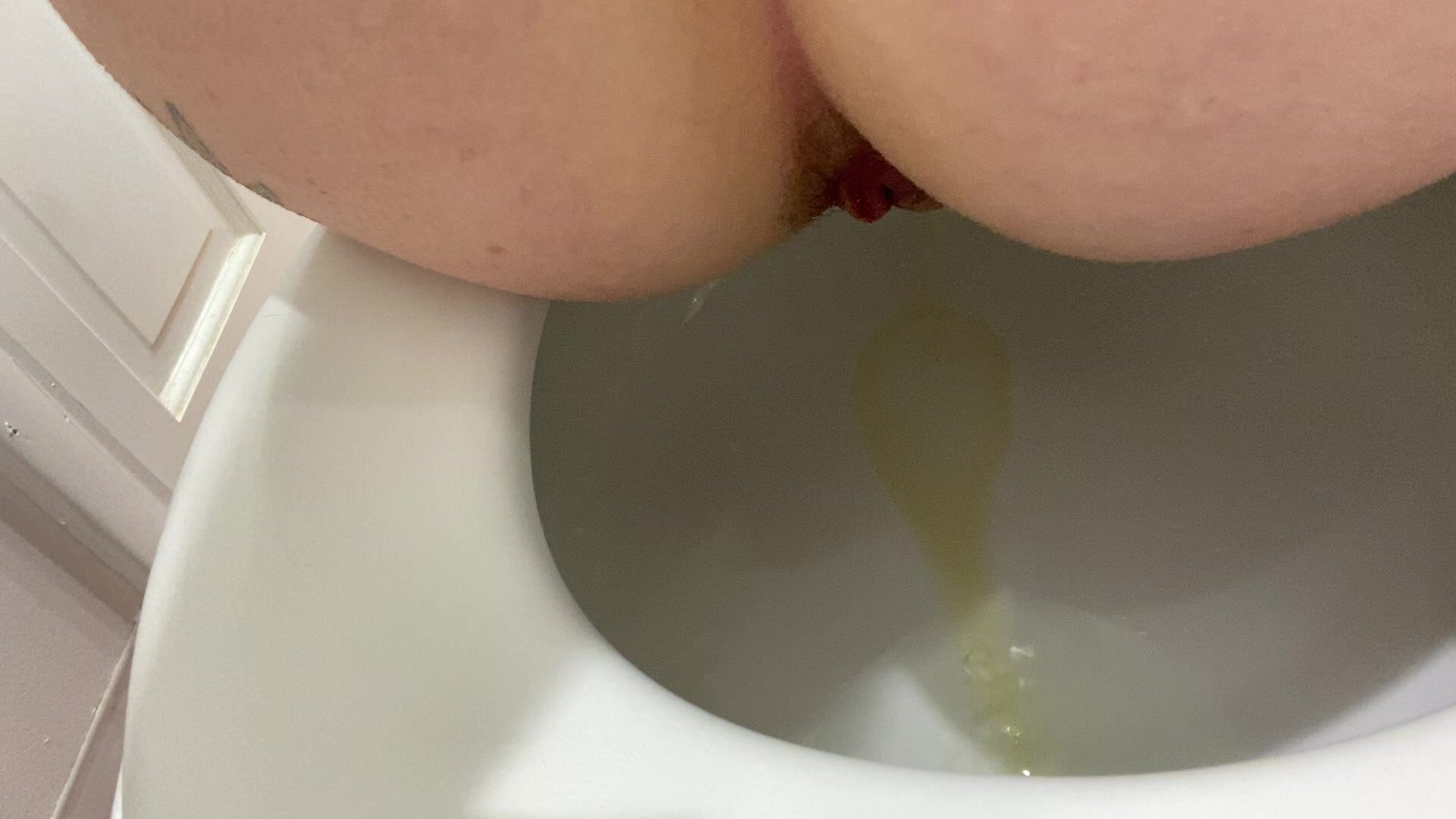 cute and sexy naked dark blonde crapping and peeing