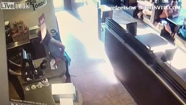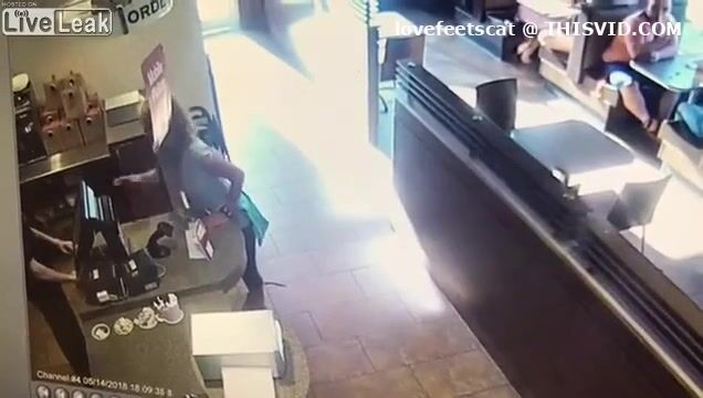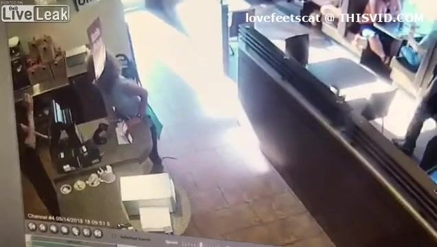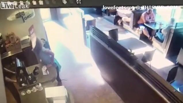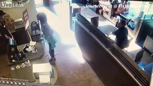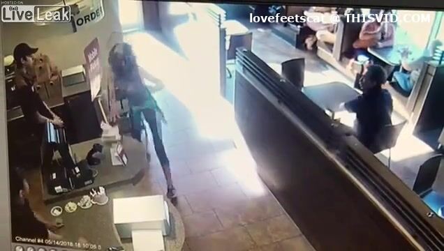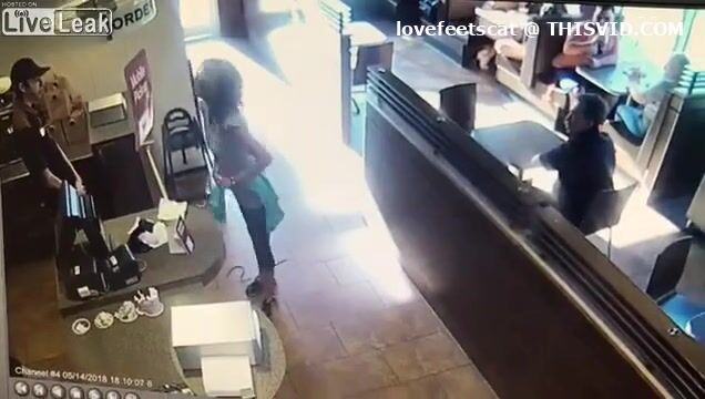 crazy girl slap men with her shit in restaurent