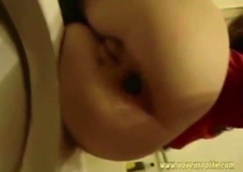 Constipated girl forcing out a hard shit