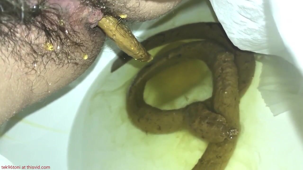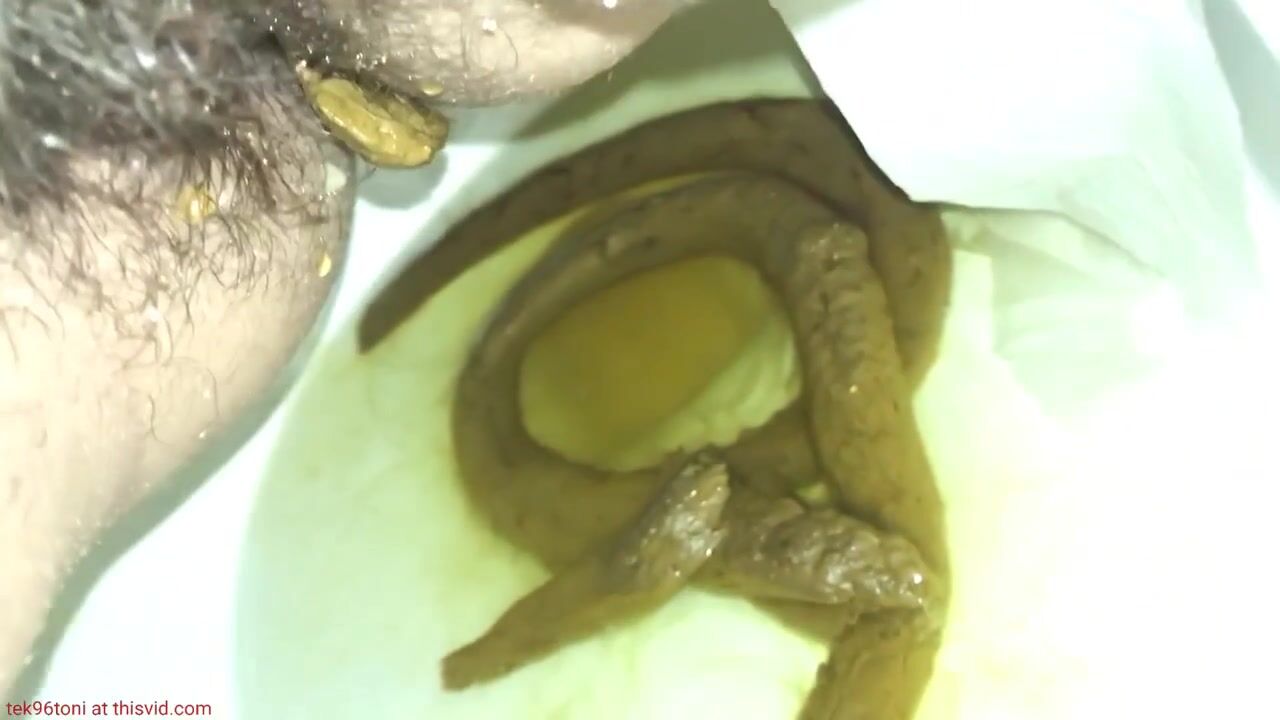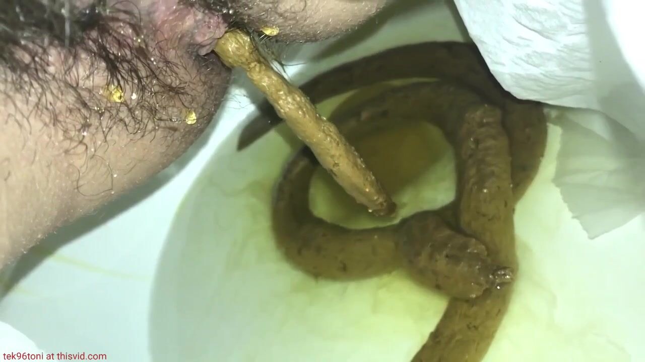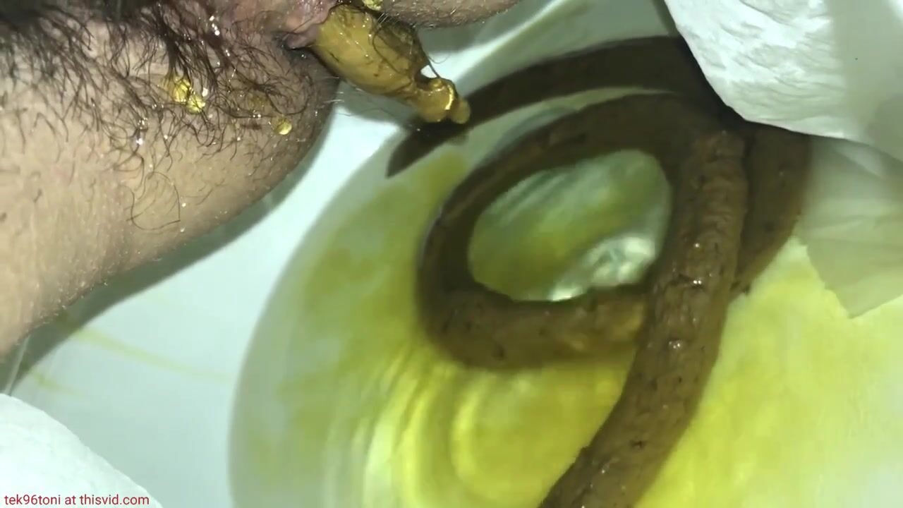 Protracted shit and strong piss in public toilet.
