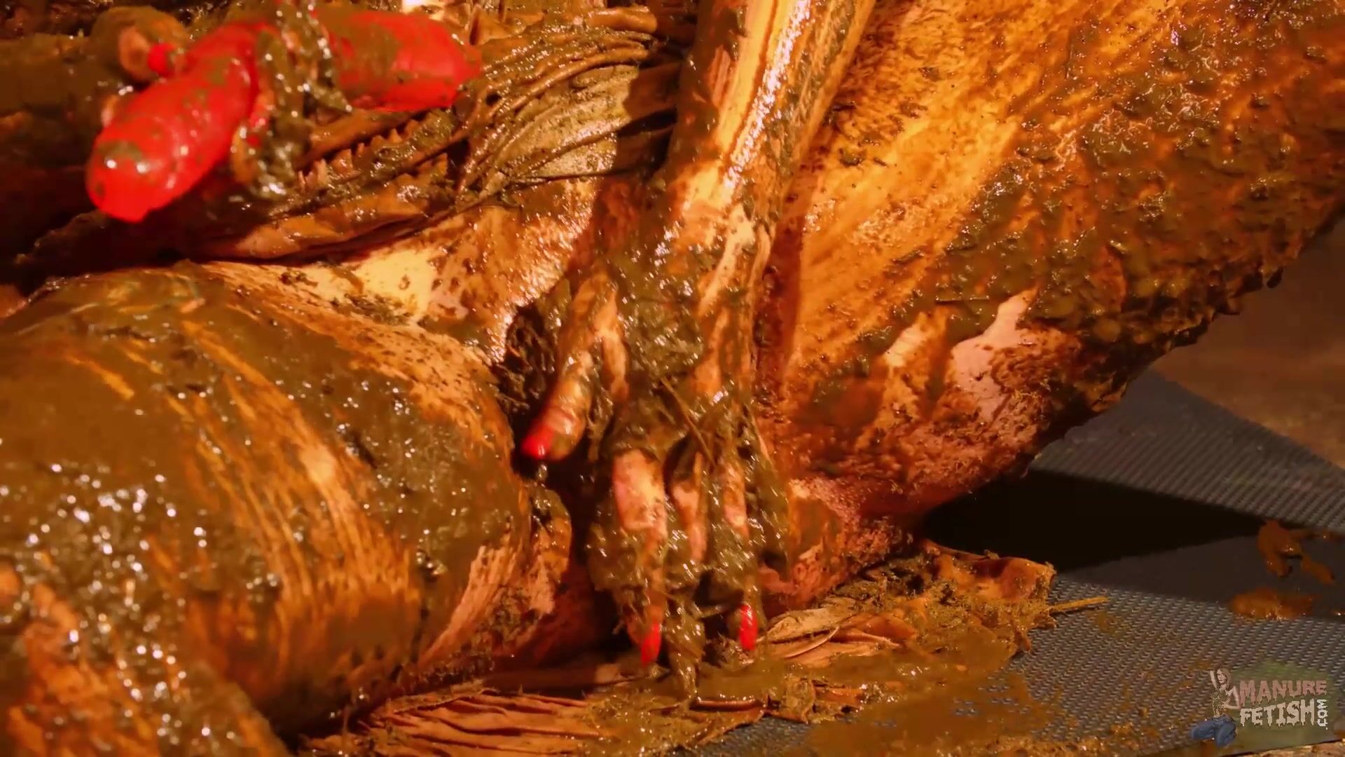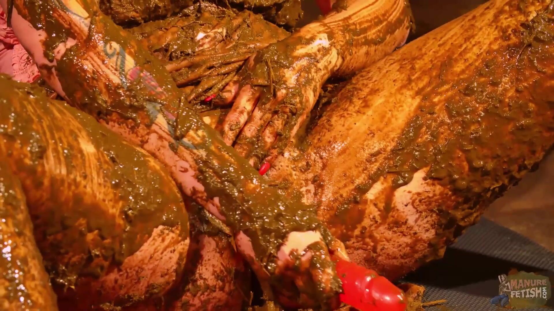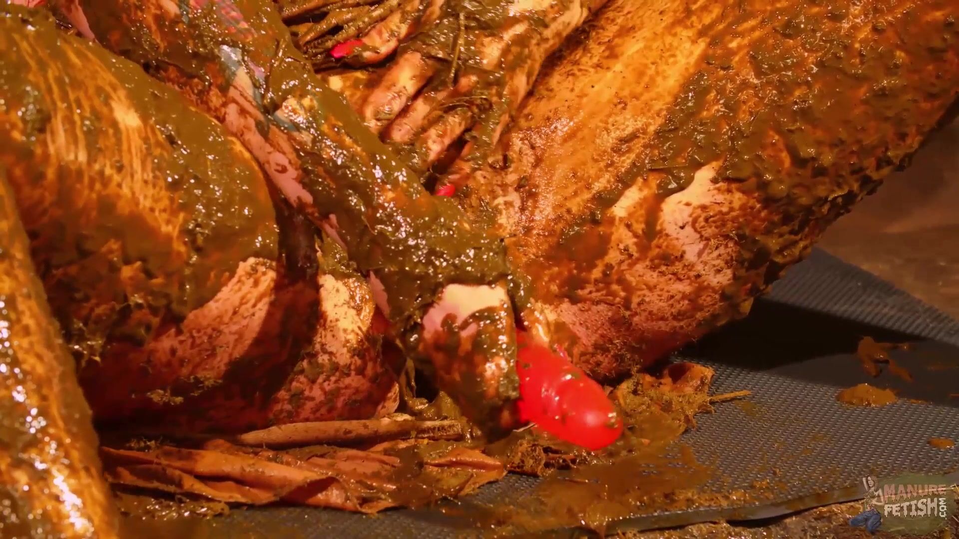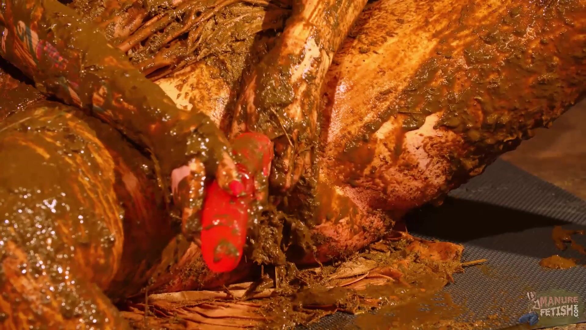 Betty stuffs her pussy with cow shit