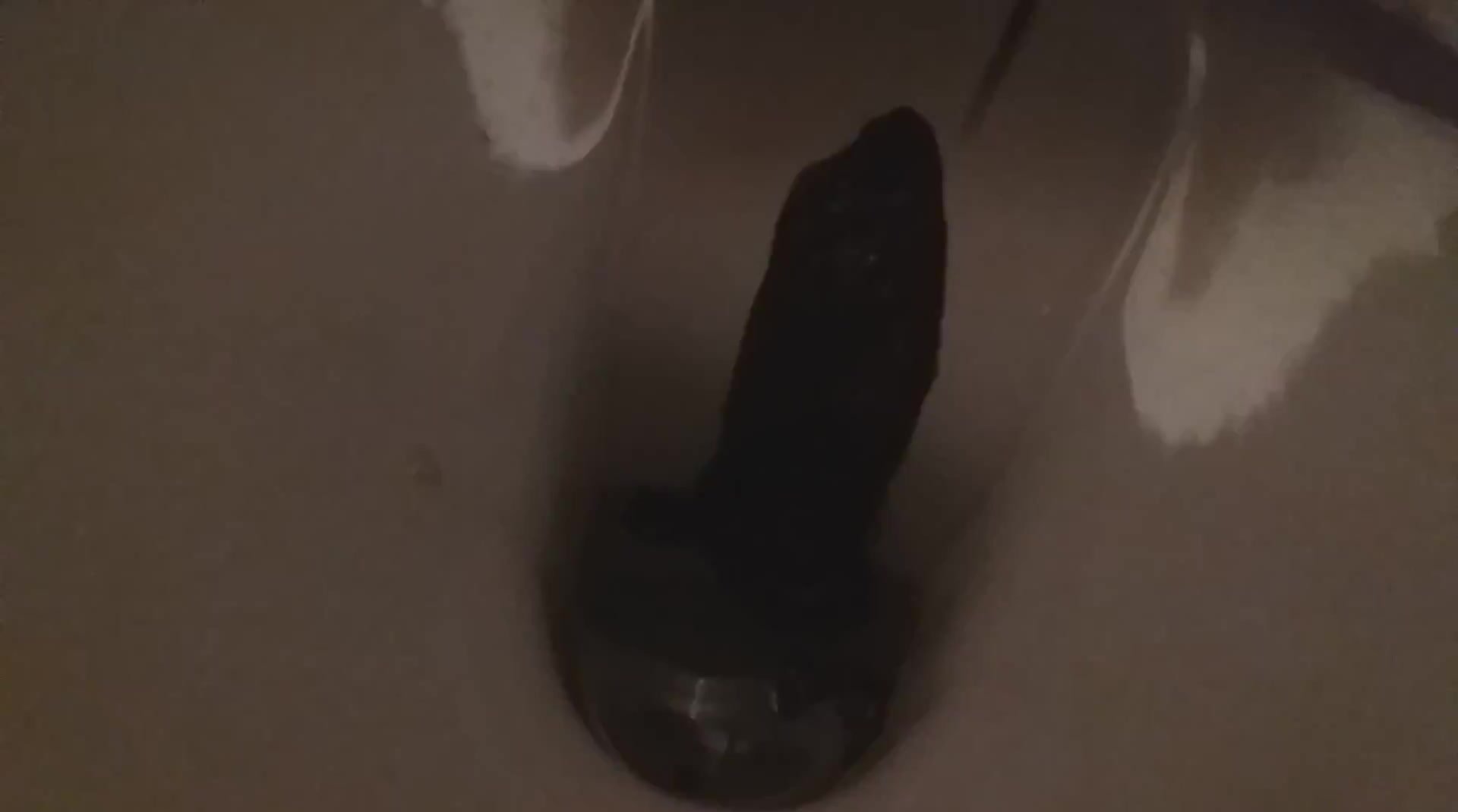 Dirty girl ride a big dildo and shit on it